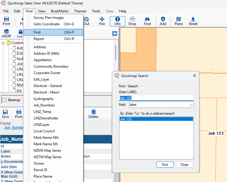 5. TO SEARCH on this job number. Click on Find > Job_numbers. This will show you the details relating to the job in the report box. (job 123)