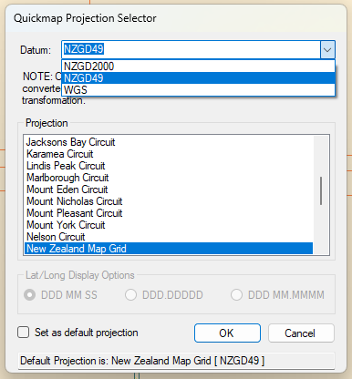 If you require this projection to be the default, place a tick in the box and click OK. NOTE: Current Default Projection is displayed at the bottom of this dialog box.