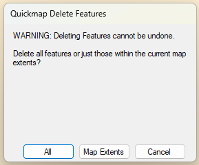 • Map Extents will delete EVERY feature in the screen extent (regardless of whether it is selected or not)