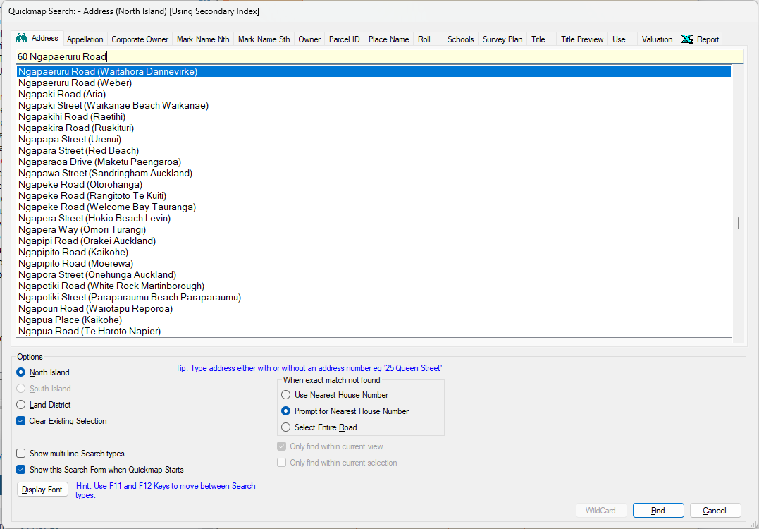 • Prompt for Nearest house Number will display a list of possible house numbers if it cannot find the house number you entered.